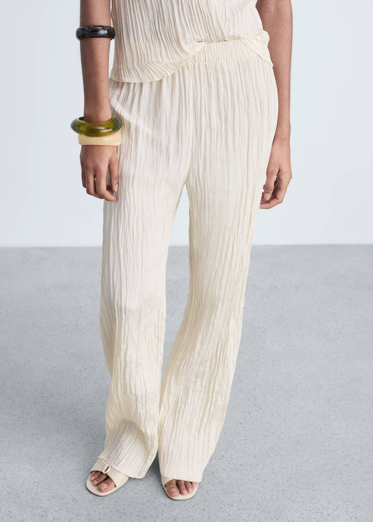 Pleated straight trousersPrice historyInitial price struck through [kr 399 ]kr 399Current price [kr 269 ]kr 269-33 %Select a colourVanillaThe model is wearing size S and is 171cm tall.Select your sizeXSNot available. I want it!SNot available. I want it!MNot available. I want it!LXLMeasurementsAddLightweight fabric. Satin fabric. Pleated fabric. Straight design. Long design. Mid-rise. Elasticated waistband. No Fastening. Ramadan CollectionDetails, composition and careStore availability