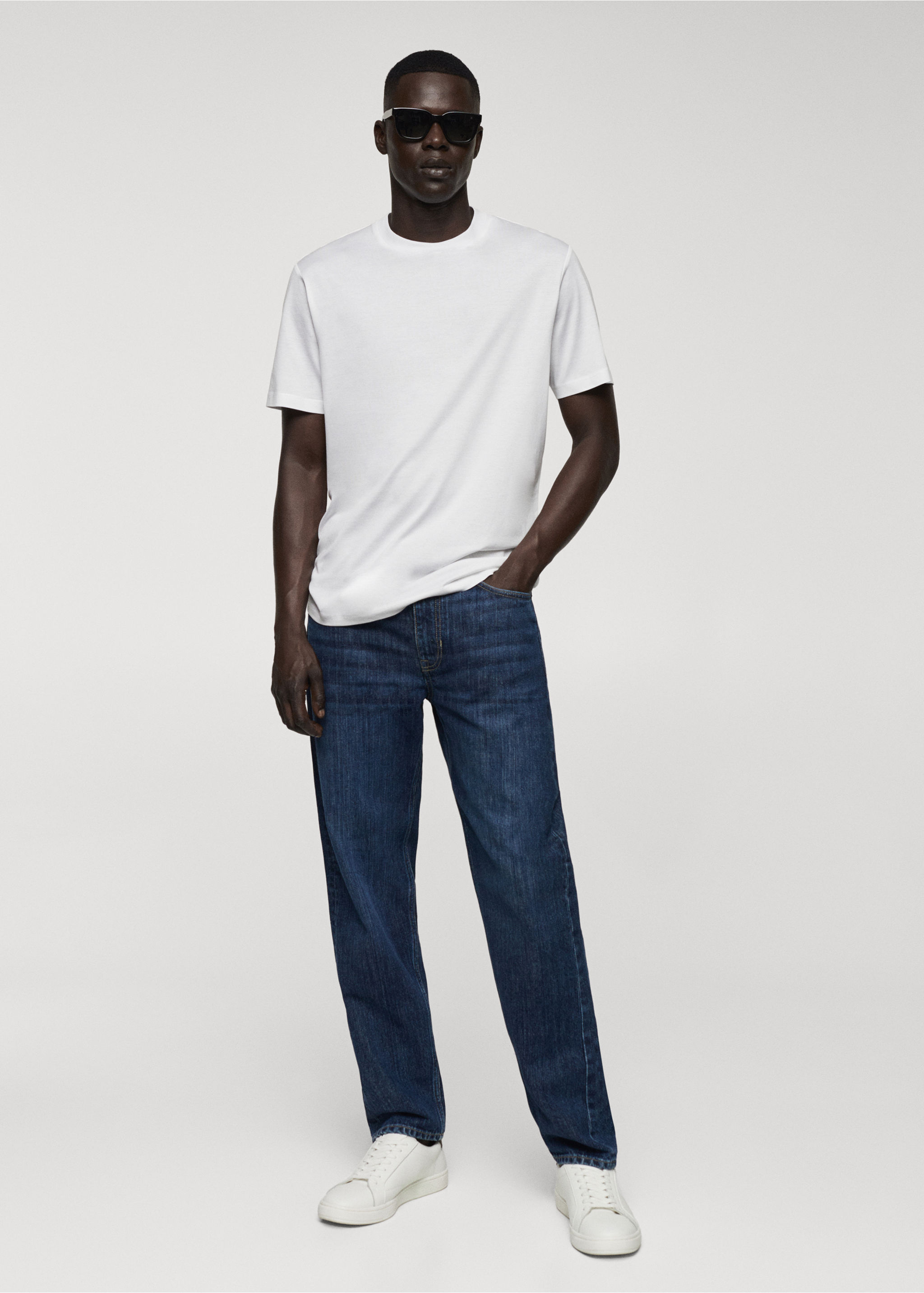 If there is one garment that is a must-have in every man's wardrobe, it's a T-shirt. Regardless of your style, men's t-shirts are timeless basics that should be refreshed every season. If you're looking for cheap outlet men's t-shirts, Mango has the perfect selection for you. Ideal for a day at the office or a slightly more casual look, our cheap men's basic t-shirts allow for a multitude of combinations with any type of trousers, sweatshirt or blazer, depending on your style. For the colder months, we have cheap men's long sleeve t-shirts, plain or printed, so you can choose your favourite according to your preferences. We also have cheap men's short sleeve t-shirts, which are perfect to wear in the summer or combine with sweatshirts or jumpers during the colder months. In our catalogue you will find a wide variety of plain designs or with youthful and casual prints. Our cheap outlet men's t-shirts are made from high quality fabrics such as cotton, knit or linen, and we have a wide range of sizes, so you'll find it easy to find what you're looking for whatever you're looking for. Take a look at our collection of garments and choose the one that best suits the way you dress, don't miss out!