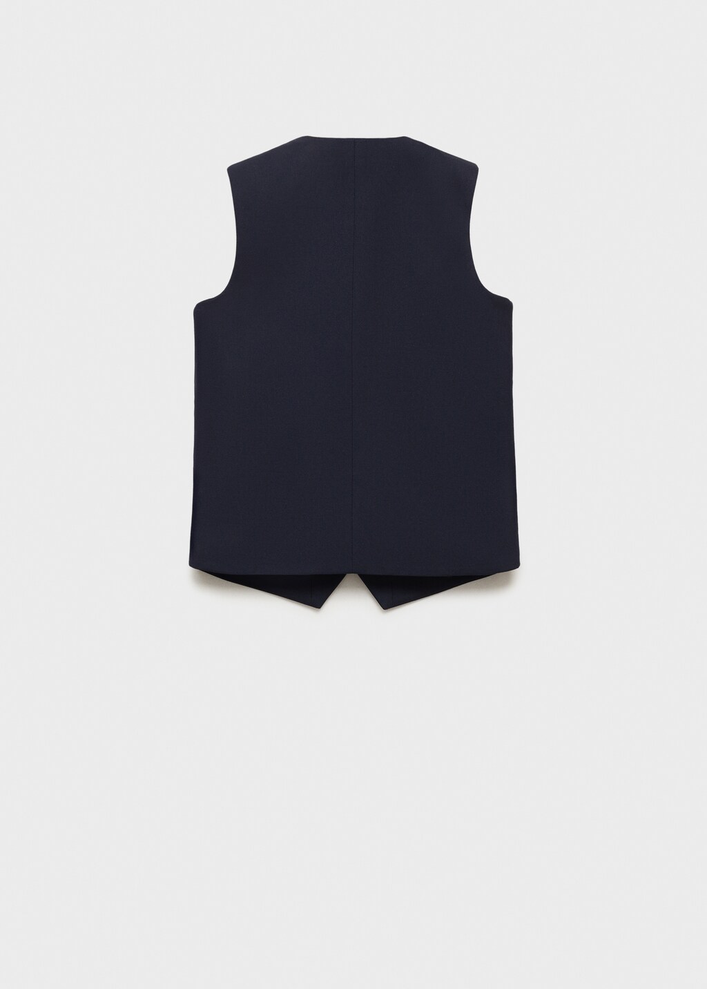 Slim fit. Short design. V-neck. Sleeveless. Button up. Inner lining. Ceremony collection.
