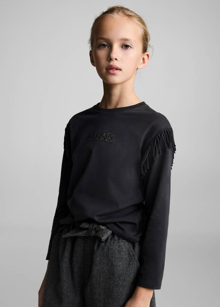 100% Cotton. Straight design. Embroidered detail. Round neck. Long sleeves. Fringe detail