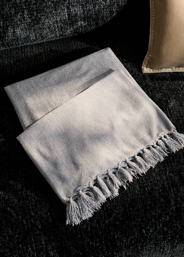 Size: 130x180cm. Chenille fabric. Fringe detail. Moderately warm fabric. Ideal for transitional seasons. Ideal for those looking for a smooth, long-lasting texture, with a sophisticated finish and resistant to daily use. Create a warm and cosy atmosphere. Available in different colours
