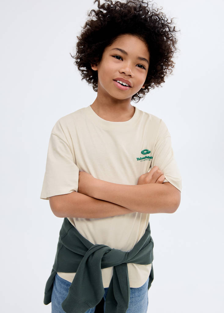 100% cotton fabric. Straight Design. Printed design. Round neck. Short sleeves. Embossed message. Printed text on the front. Printed drawing on the back