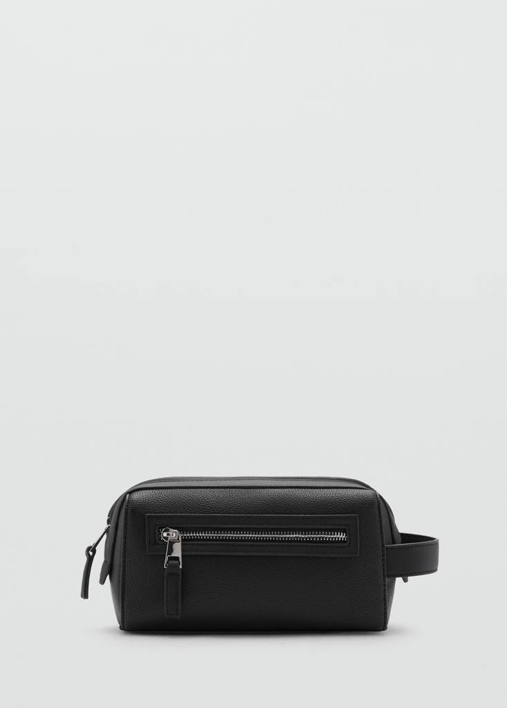 Pebbled leather effect. Main compartment with zip closure. Side pocket with zip closure. Inner compartment. Short side handle. Nappa faux leather details
