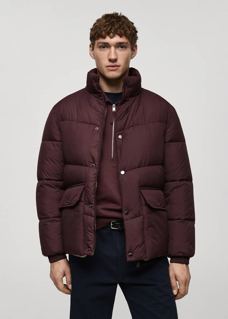 Recycled materials. Quilted design. Water-repellent: The durable finish of this garment protects against light rain, repelling contact with water and raindrops. High collar. Interior pocket. Front zip and snap button closure. Two patch pockets, flap and button on the front