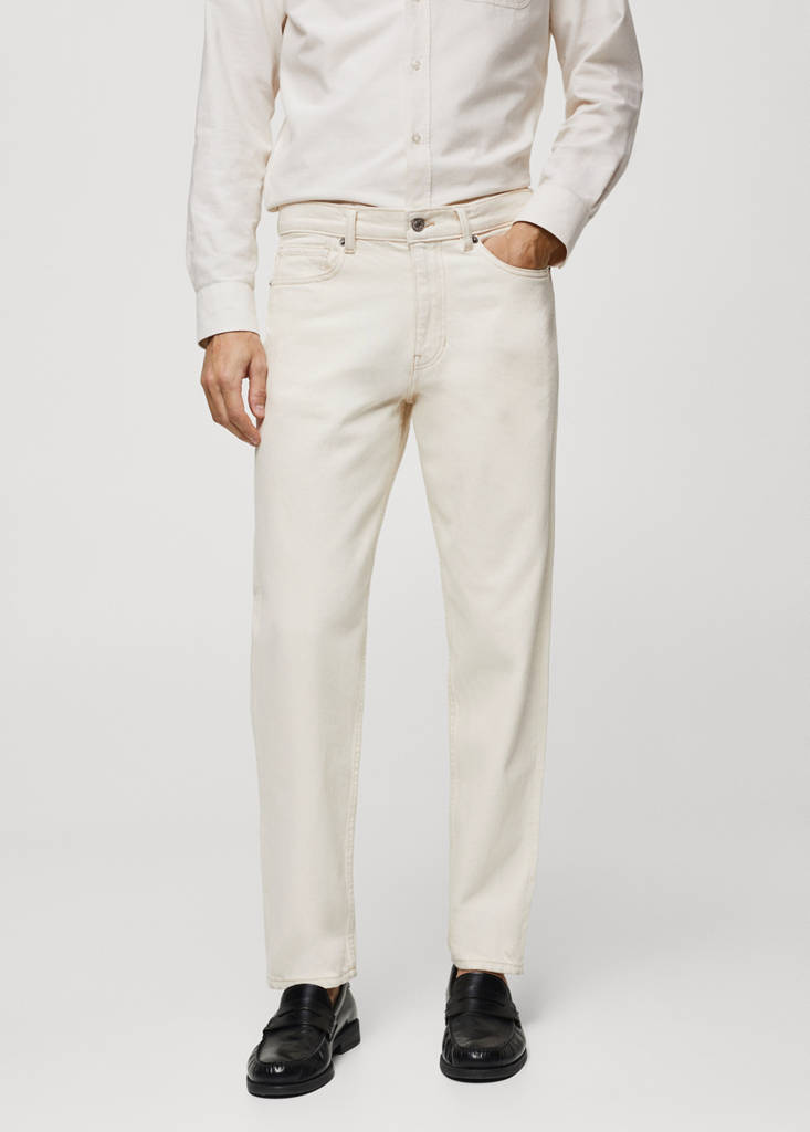 ESSENTIALS: Made to last. Straight-fit. Denim-style cotton fabric. White. Zip and button fastening. Belt loops. Two side pockets. Coin pocket. Two patch pockets at the back