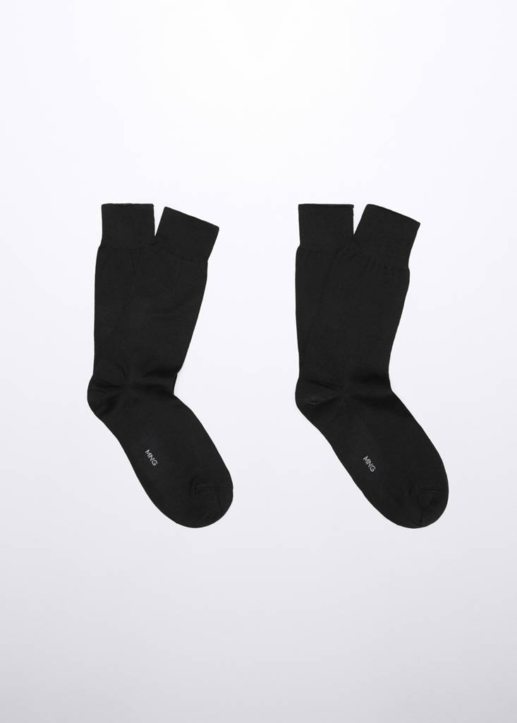 Pack of 2 100% plain cotton socksPrice historyInitial price struck through [€ 15.99 ]€ 15.99Current price [€ 10.99 ]€ 10.99-31%Select a colourBlackSelect your size40-42Not available. I want it!43-45Not available. I want it!DimensionsNotify meLogo on the plant. Pack of 2. 100% cotton fabricDetails, composition and careStore availability