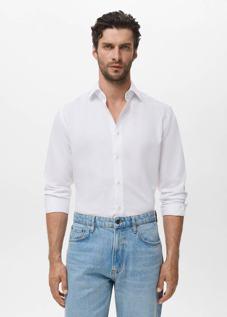 ESSENTIALSSlim-fit cotton shirtPrice historyInitial price struck through [€ 49.99 ]€ 49.99Second price struck through [€ 39.99 ]€ 39.99Current price [€ 33.99 ]€ 33.99-32%Select a colourWhiteThe model is wearing size M and is 185cm tall.Select your sizeXSLast few items!SNot available. I want it!MLast few items!LNot available. I want it!XLNot available. I want it!XXLLast few items!DimensionsAddSlim fit. Cotton blend fabric. Shirt collar. Button up. Long sleeves with buttoned cuffsDetails, composition and careStore availability