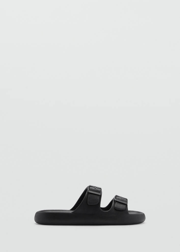 Double-buckle rubber sandalsPrice historyInitial price struck through [€ 25.99 ]€ 25.99Second price struck through [€ 19.99 ]€ 19.99Current price [€ 14.99 ]€ 14.99-42%Select a colourBlackSelect your size39-40Not available. I want it!41-42Not available. I want it!43-44Not available. I want it!45-46Last few items!DimensionsAddFlip-flop sandals. Double buckle closure. Adjustable fastening strips. Rubber cut. Round toe. Rubber soleDetails, composition and careStore availability