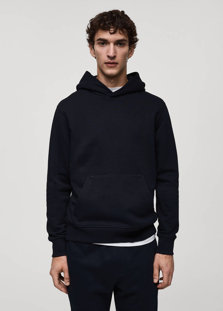 Regular fit. Cotton blend fabric. Warm-effect brushed cotton interior. With hood. Ribbed cuffs and hem. Straight hem. The maroon model is an online exclusive. The colour black is exclusively online. Pouch pocket. Long sleeves with elastic cuffs. Ribbed finishes on sleeve and hem
