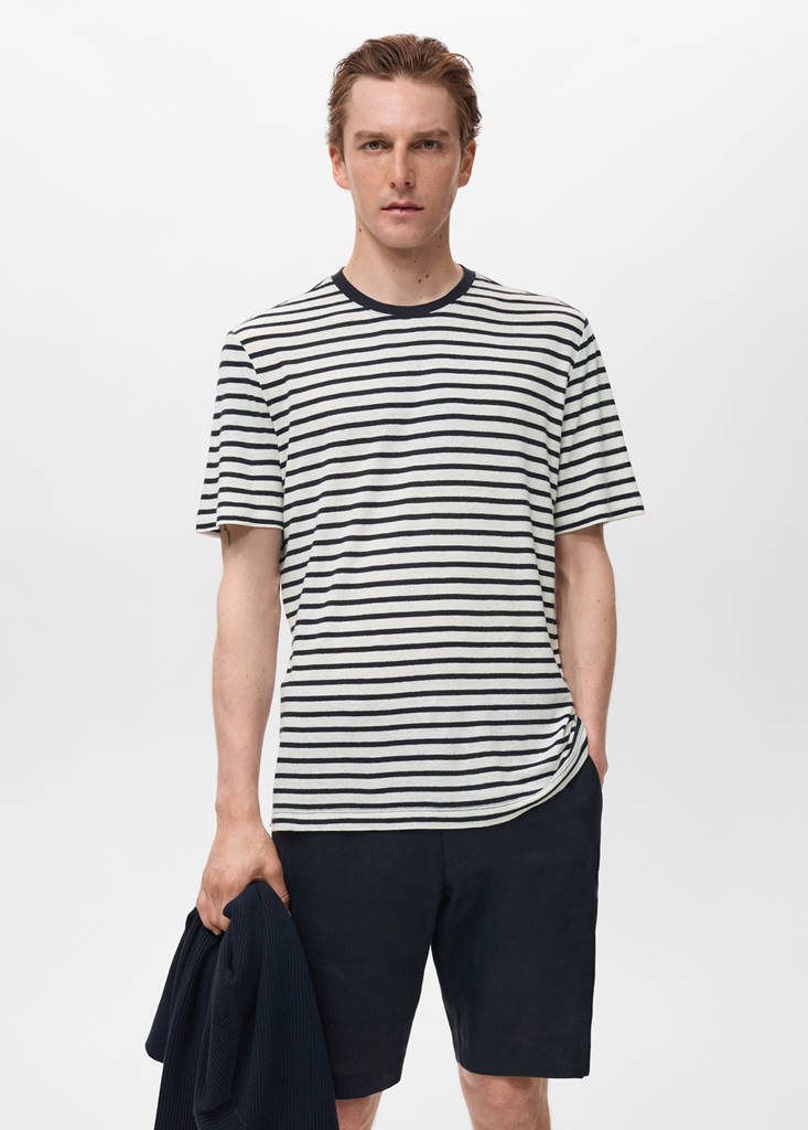 Striped slim-fit linen t-shirtPrice historyInitial price struck through [€ 39,99 ]€ 39,99Second price struck through [€ 31,99 ]€ 31,99Current price [€ 16,99 ]€ 16,99-58%Select a colourNavyThe model is wearing size M and is 185cm tall.Select your sizeXSNot available. I want it!SNot available. I want it!MNot available. I want it!LNot available. I want it!XLNot available. I want it!XXLNot available. I want it!MeasurementsNotify meSlim fit. Linen mix. Striped design. Back opening. Fitted Design. Short sleeves. SMART ETHEREAL theme. Straight hemDetails, composition and careStore availability