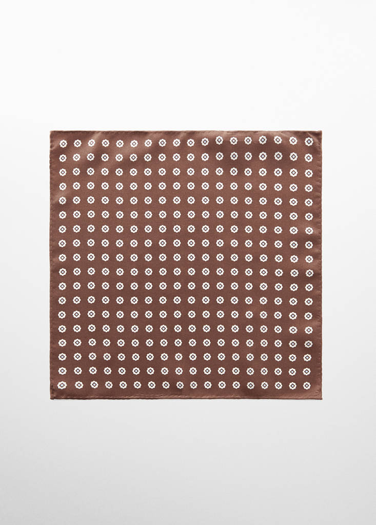 100% silk pocket squarePrice historyInitial price struck through [€ 25.99 ]€ 25.99Current price [€ 17.99 ]€ 17.99-31%Select a colourBrownSelect your sizeOne sizeLast few items!Add100% mulberry silk. Geometric print. You will receive the item in a gift30.0x30.0 cmDetails, composition and careStore availabilityItem qualitiesSilk100%As one of the world's most valuable natural fibres, silk gives a lustrous finish and soft feel to garments.