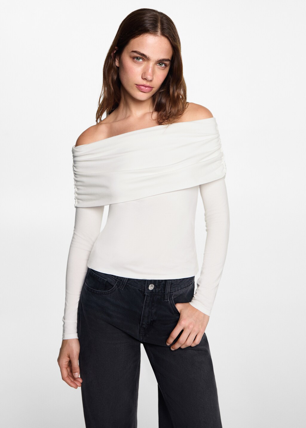 Fabric with cotton. Straight Design. Off-shoulder design. Off shoulder. Long sleeve. The model's image has been created using artificial intelligence.