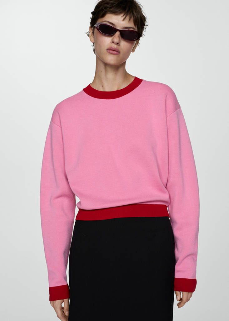 Contrast trim sweaterPrice historyInitial price struck through [€ 45,99 ]€ 45,99Current price [€ 34,99 ]€ 34,99-24%Select a colourPastel PinkThe model is wearing size S and is 176cm tall.Select your sizeXSNot available. I want it!SNot available. I want it!MLast few items!LNot available. I want it!XLNot available. I want it!MeasurementsAddFine knit fabric. Straight design. Round neck. Long sleeves. Contrasting trim finishDetails, composition and careStore availability