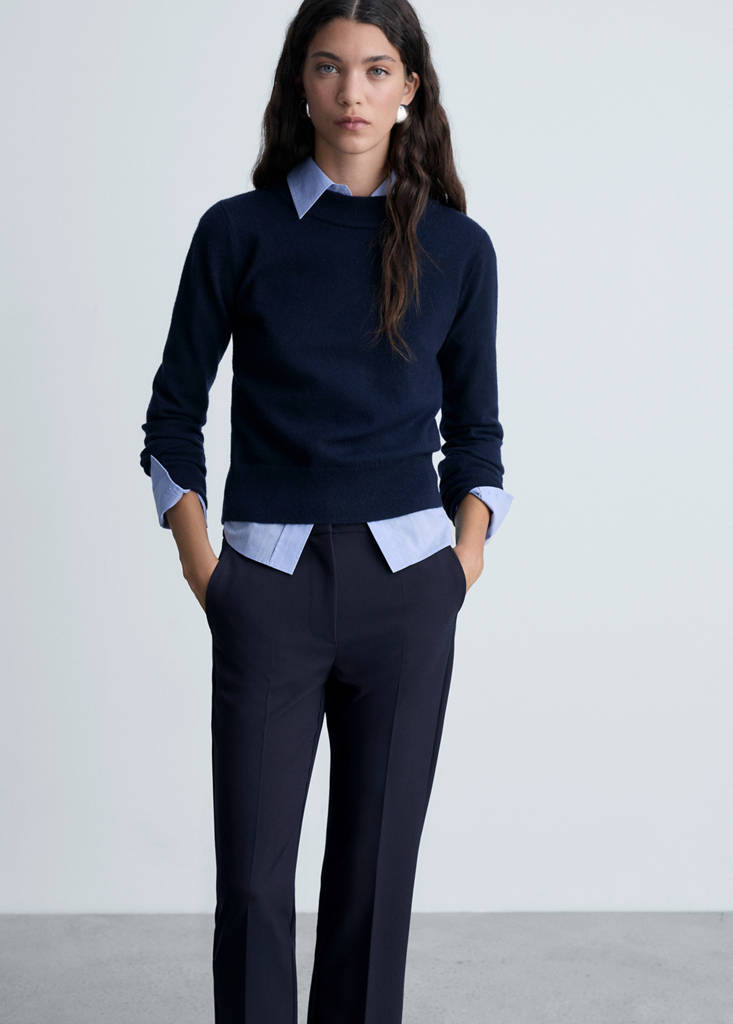 Top seller!Straight-fit pleated trousersPrice historyInitial price struck through [€ 49,99 ]€ 49,99Current price [€ 38,99 ]€ 38,99-22%Select a colourDark NavyThe model is wearing size 36 and is 178cm tall.Select your size32Last few items!34Last few items!363840Last few items!42Last few items!44Not available. I want it!MeasurementsAddFluid fabric. Straight design. Ankle design. Two side pockets. Belt loops. Concealed button, hook and zip fastening. Dart detail. Inner liningDetails, composition and careStore availability