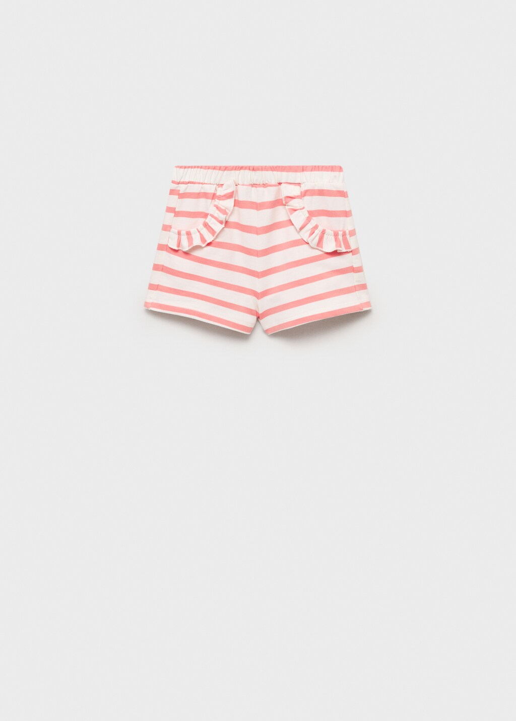 100% cotó. Disseny recte. Disseny curt. Estampat Ratlles. Dues butxaques amb volant a la part davantera. Goma elàstica. Total look