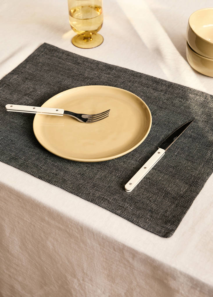 Teixit 100% lli. Mida: 35x50 cm. Estovalles individuals. Fils tintats. Estructura d’espiga. Combina amb el camí de taula de conjunt