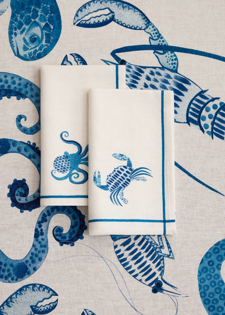 Teixit de cotó i lli. Mida: 45x45 cm. Pack de 4. Estampat marí. Disseny bicolor. Aporta frescor i un estil natural a la teva taula. Combina amb més productes de la col·lecció