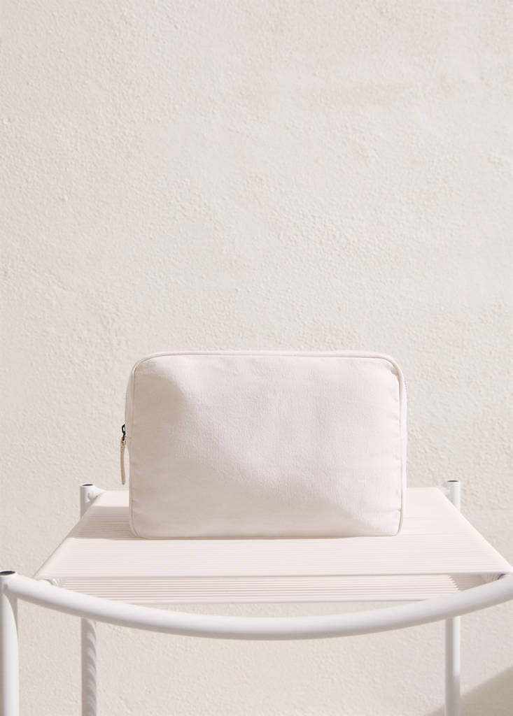 100% Cotó. L'estructura del necesser és rectangular amb vores arrodonides, proporcionant una forma cohesiva i compacta que optimitza l'espai. Tanca amb cremallera. Combina amb més productes de la col·lecció. Disponible en diversos colors