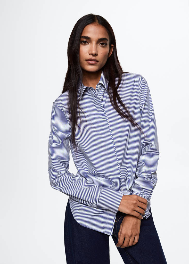 Confecció i teixit prèmium. Teixit 100% cotó. Teixit fluid. Teixit popelín de cotó. Disseny entallat. Coll camiser. Estampat de ratlles. Detall de botons gravats. Tanca de botons a la part davantera. Màniga llarga amb punys botonats