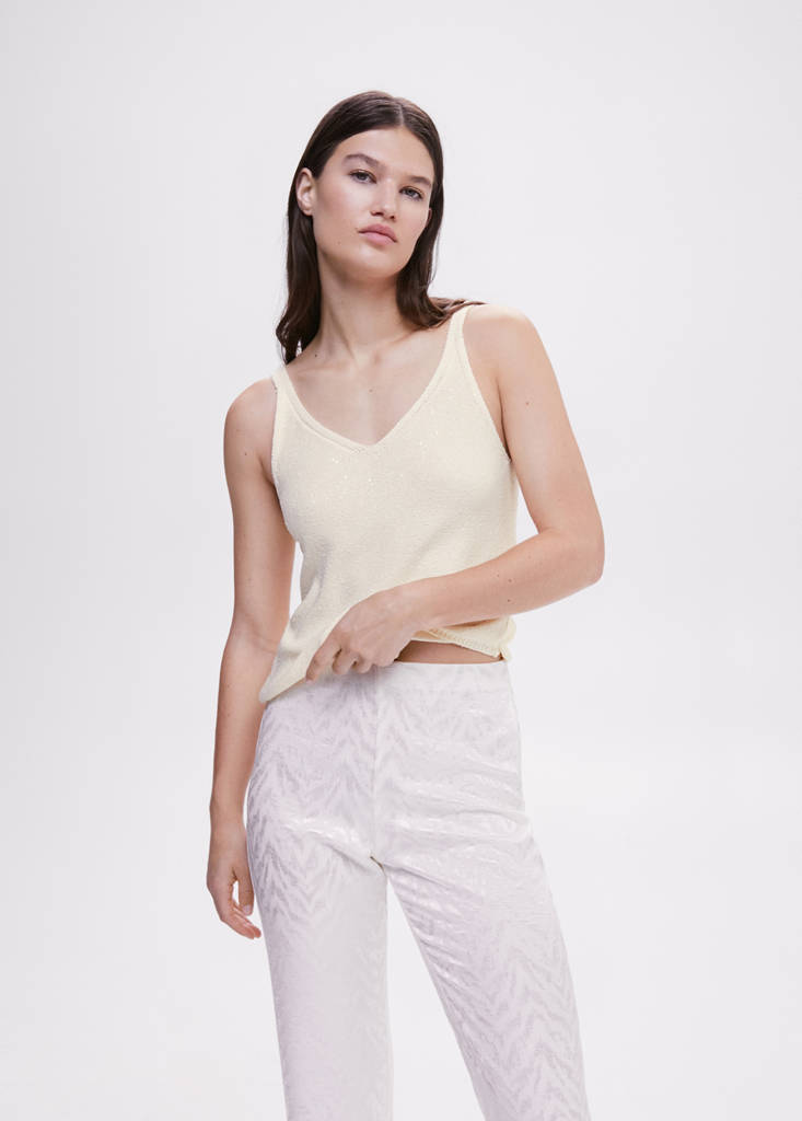 Col·lecció Selection. Teixit de punt. Disseny recte. Detall de lluentons. Coll punta. Elàstics fins