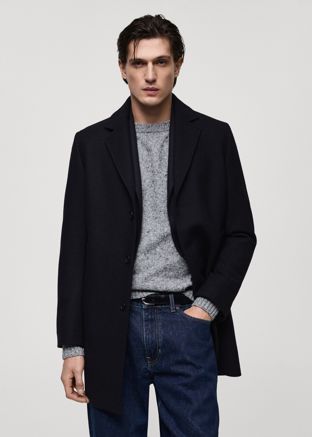 Teixit barreja de llana reciclada. Slim fit. Pensat per als mesos menys freds. Disseny recte. Llarg mitjà. Solapes de mossa i trau. Dos butxaques laterals. Obertura lateral a la vora. Folre interior. Butxaca interior. Màniga llarga botonada. Tancament davanter amb botons. El color gris és exclusiu online.