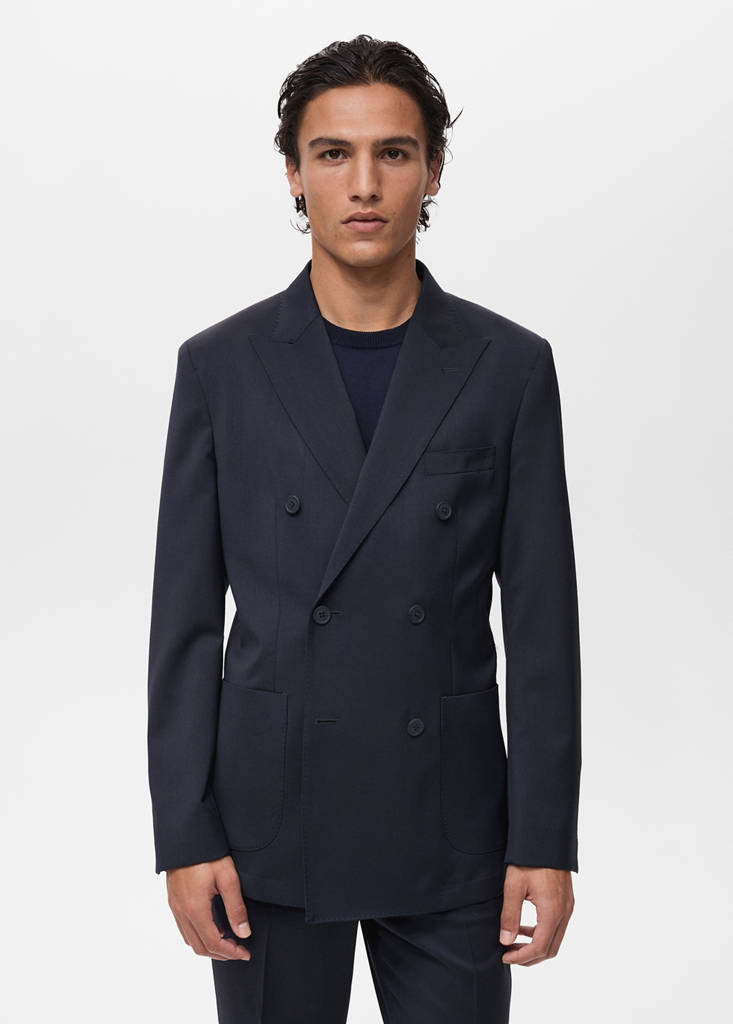 Teixit 100% llana freda. Col·lecció Selection. Silueta regular. Solapes de pic. Tanca davantera amb botons creuats. Butxaca de rivet al pit. Dues butxaques aplicades laterals. Doble obertura posterior