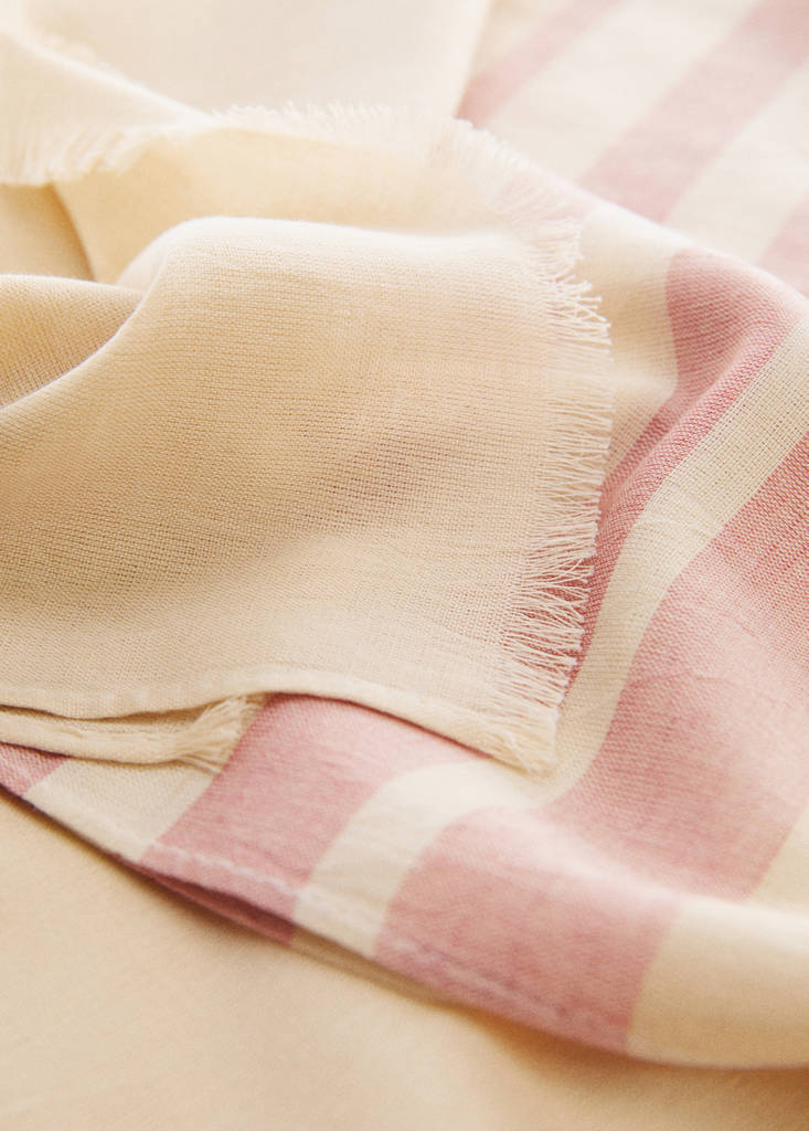 Teixit barreja de cotó i lli. Sanefa de ratlles. Acabaments desfilats
