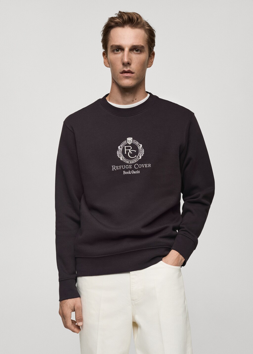Teixit 100% cotó. Tallatge regular. Coll rodó. Dibuix brodat al pit. Màniga llarga amb punys elàstics. Baix recte.