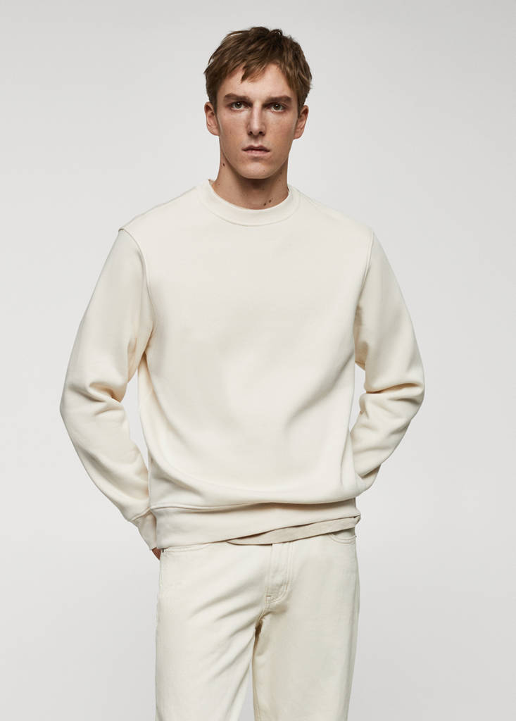 Regular fit. Teixit barreja de cotó. Interior de cotó perxat. Coll rodó. Màniga llarga. Baix recte. ESSENTIALS: Fets per durar. Els colors marró i negre són exclusius online. Vores de canalé en coll, màniga i vora