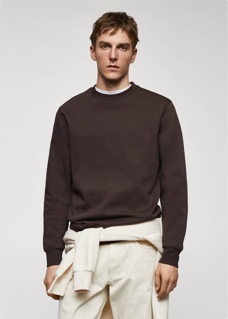 Regular fit. Teixit barreja de cotó. Interior de cotó perxat. Coll rodó. Màniga llarga. Baix recte. ESSENTIALS: Fets per durar. Els colors marró i negre són exclusius online. Vores de canalé en coll, màniga i vora