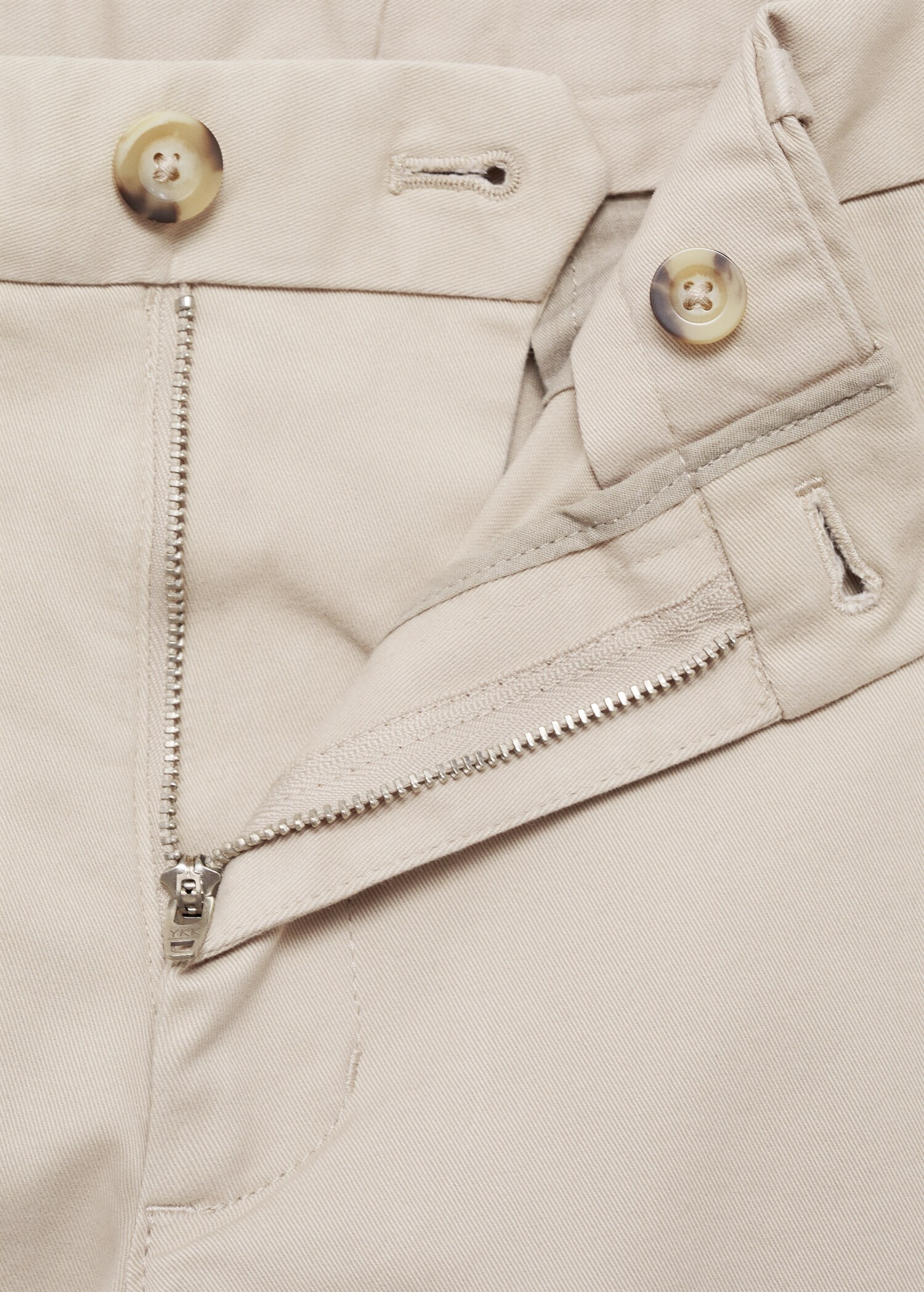 Slim fit. Estil xinesos. Cinc butxaques. Teixit elàstic de cotó. Travetes per a cinturó. Tancament de cremallera i botó. Dos butxaques laterals. Butxaca moneder. Dues butxaques de trau a la part posterior.