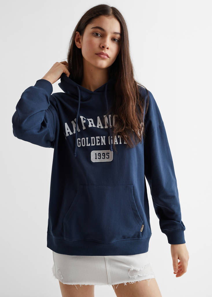 100% cotó. Missatge San Francisco. Disseny oversize. Caputxa. Sense tanca. Màniga llarga. La model mesura 169 i porta una talla S