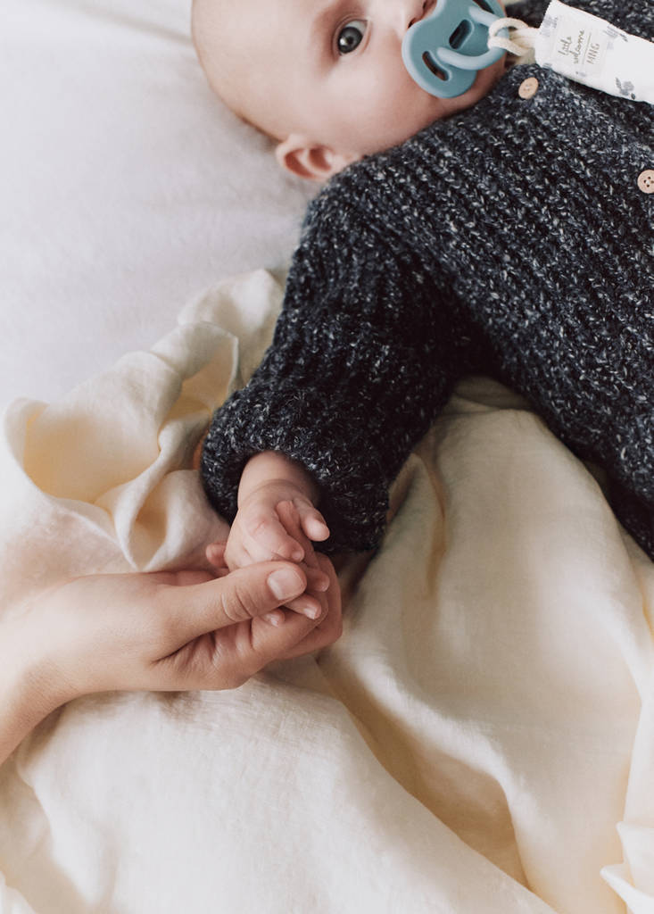 Coll rodó. Màniga llarga. Tancament davanter amb botons. Teixit de punt. Disseny recte
