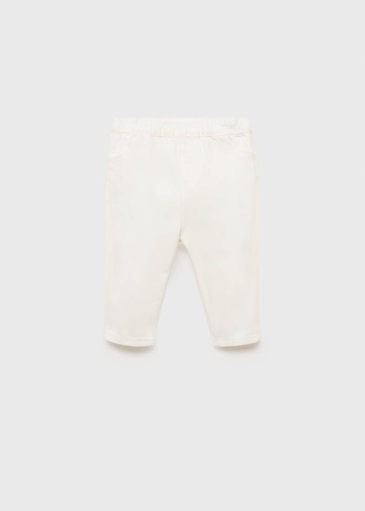 100% Cotó. Disseny recte. Cintura elàstica ajustable. Dues butxaques davanteres