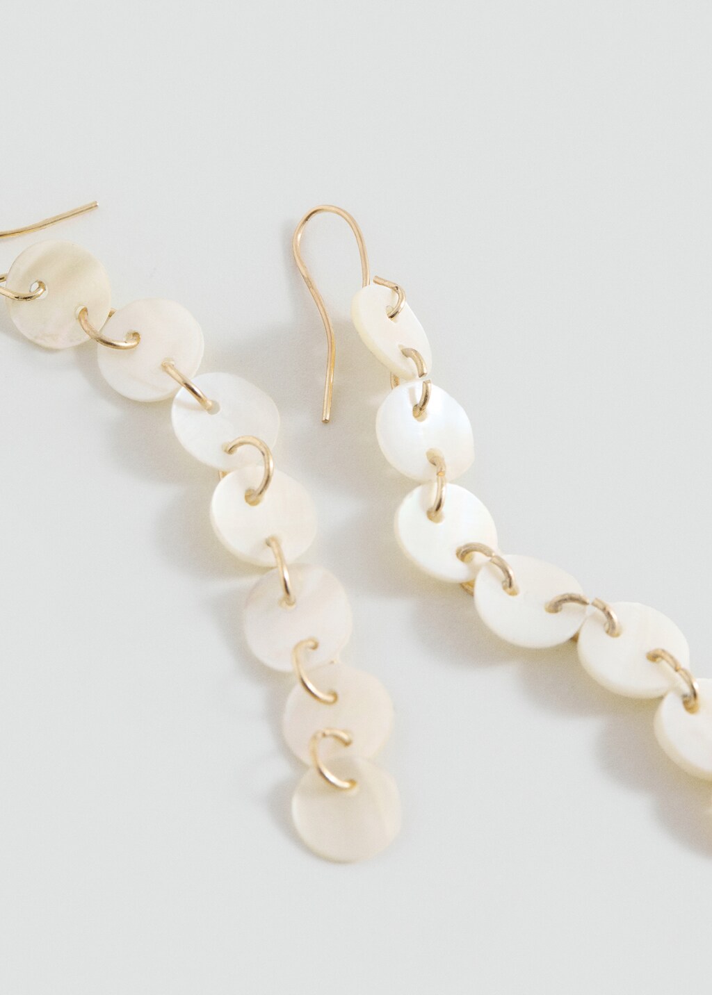 Disseny llarg. Botons efecte nacre. Cèrcols metàl·lics. Tancament de ganxo.