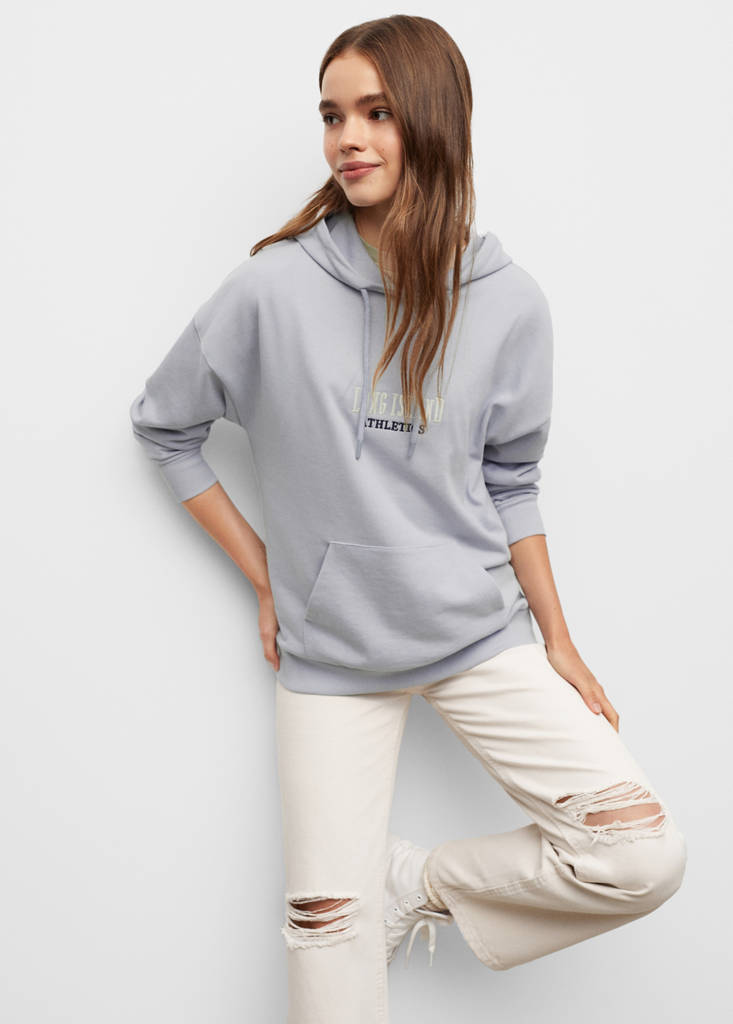 Teixit amb cotó. Missatge estampat. Disseny oversize. Caputxa. Màniga llarga