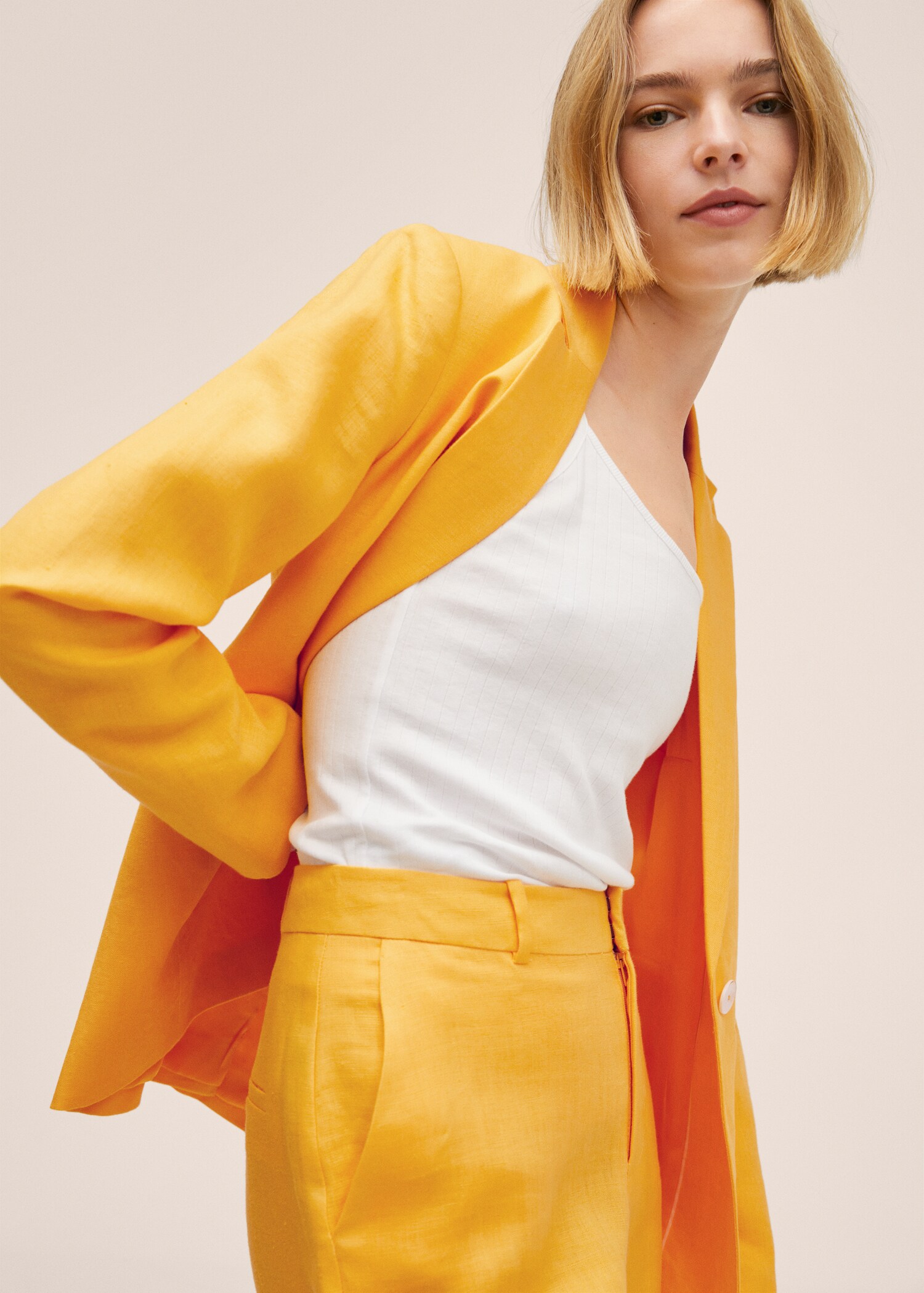 100% Lino. Diseño recto. Estilo traje. Ankle brace. Tiro alto. Trabillas. Dos bolsillos laterales. Bolsillos decorativos en la parte posterior. Cierre oculto de botón, gancho y cremallera. Total look. Disponible Plus.