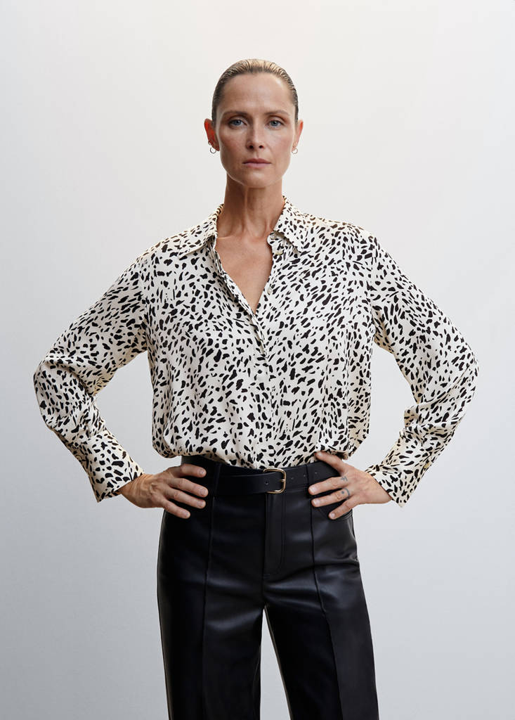 Tejido fluido. Tejido con textura. Acabado satinado. Diseño recto. Cuello camisero. Manga larga con puños abotonados. Cierre de botones en la parte delantera. Disponible Plus. Esta prenda pertenece a nuestra Guía de Regalos