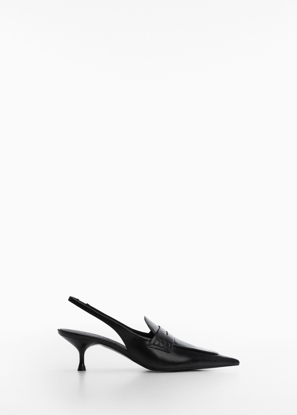 100% piel bovino. Con punta. Tacón embudo. Destalonado. El tacón mide 2 cm.