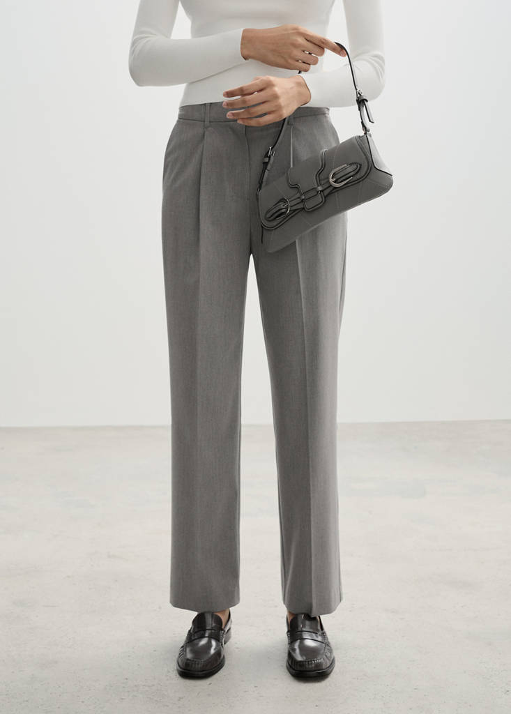 Pantalón recto pinzasHistórico de preciosPrecio inicial tachado [29,99 € ]29,99 €Precio actual [20,99 € ]20,99 €-30 %Selecciona un colorGris claro vigoréLa modelo lleva la talla 36 y mide 180cm.Selecciona tu talla32No disponible ¡Lo quiero!34No disponible ¡Lo quiero!36No disponible ¡Lo quiero!384042No disponible ¡Lo quiero!MedidasAñadirDiseño recto. Diseño largo. Tiro medio. Cierre oculto de botón, gancho y cremallera. Trabillas. Dos bolsillos laterales. Pinzas. Bolsillo de ribete en la parte posteriorDetalles, composición y cuidadosDisponibilidad en tienda