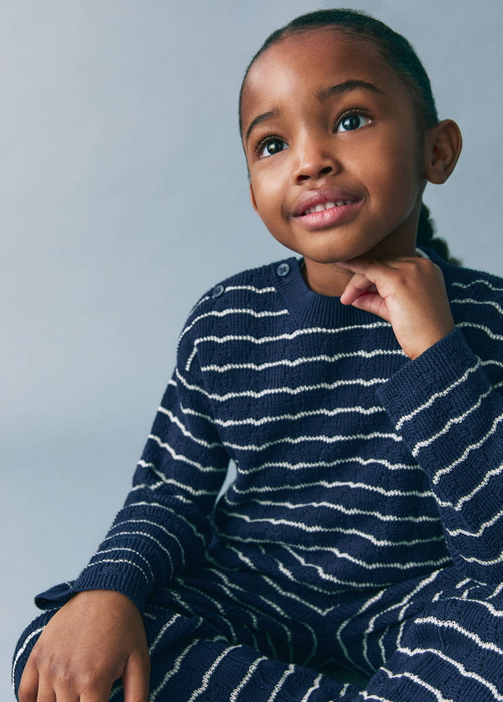 Tejido de algodón. Diseño recto. Diseño de rayas. Diseño calado. Cuello redondo. Manga larga. Total look