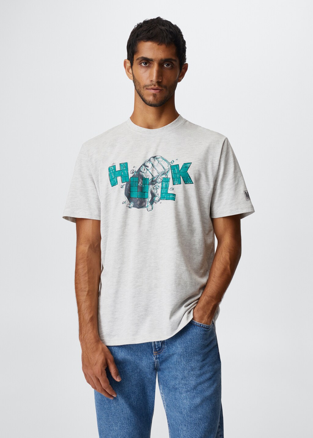 Regular fit. Diseño Marvel. Tejido mezcla de algodón. Cuello redondo. Manga corta. El modelo mide 180 cm y lleva una talla M.