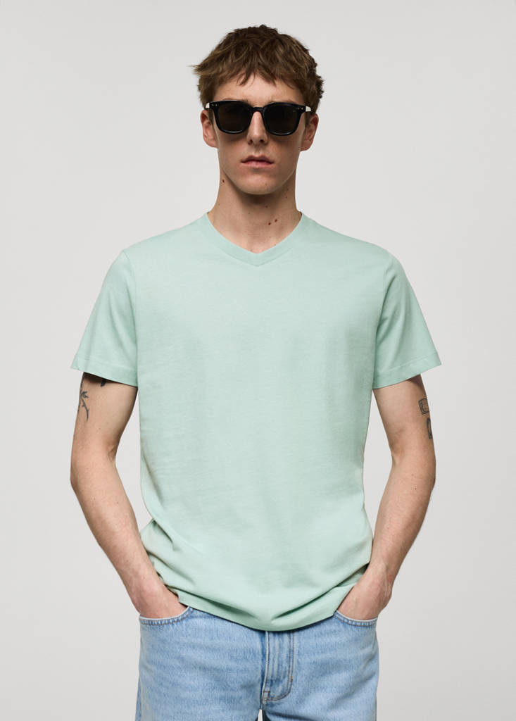Camiseta slim fit algodón cuello pico