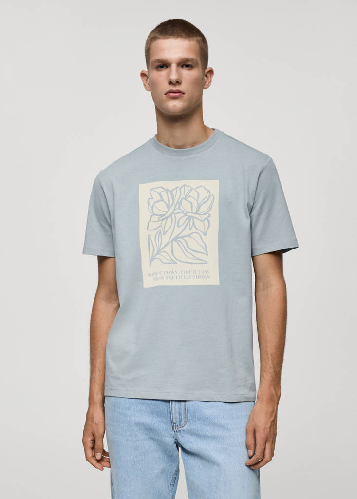 Camiseta 100% algodón estampado pechoHistórico de preciosPrecio inicial tachado [19,99 € ]19,99 €Precio actual [15,99 € ]15,99 €-20 %Selecciona un colorAzul celesteSelecciona tu tallaXSNo disponible ¡Lo quiero!SNo disponible ¡Lo quiero!MNo disponible ¡Lo quiero!LNo disponible ¡Lo quiero!XLNo disponible ¡Lo quiero!XXLNo disponible ¡Lo quiero!MedidasAvísameRegular fit. Cuello redondo acabado rib. Diseño estampado en el pecho. Manga corta. Bajo recto. Tejido 100% algodónDetalles, composición y cuidadosDisponibilidad en tienda