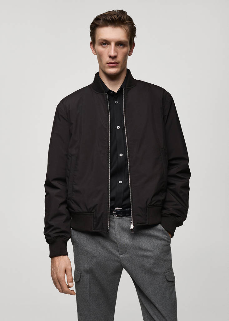 Regular fit. Diseño bomber. Diseño acolchado. Tejido de poliéster reciclado. Cuello bomber en canalé. Manga larga con puños elásticos. Cierre delantero con cremallera metálica. Dos bolsillos de ribete delanteros. Bajo con goma elástica. Bolsillo interior