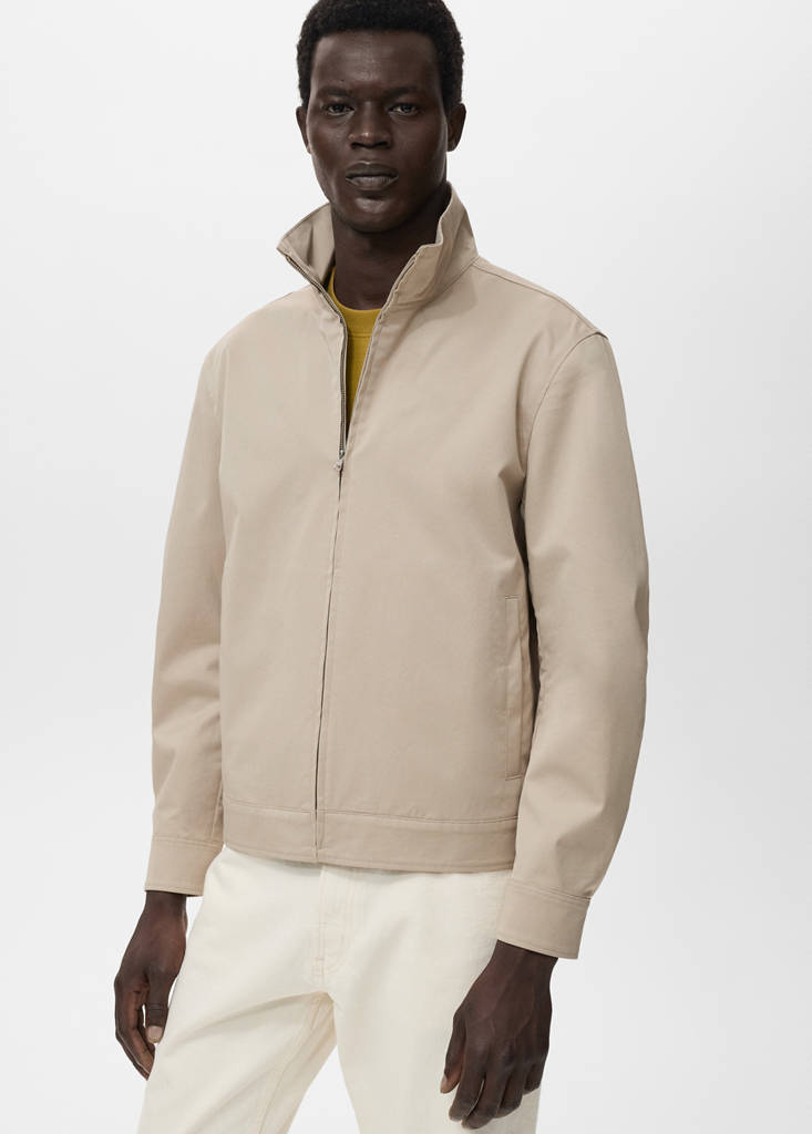 Tejido mezcla de algodón. Silueta Recto. Cuello solapa Chimenea. Dos bolsillos de ribete laterales. Manga larga. Puños abotonados. Cierre delantero con cremallera. Bajo ajustable con botón