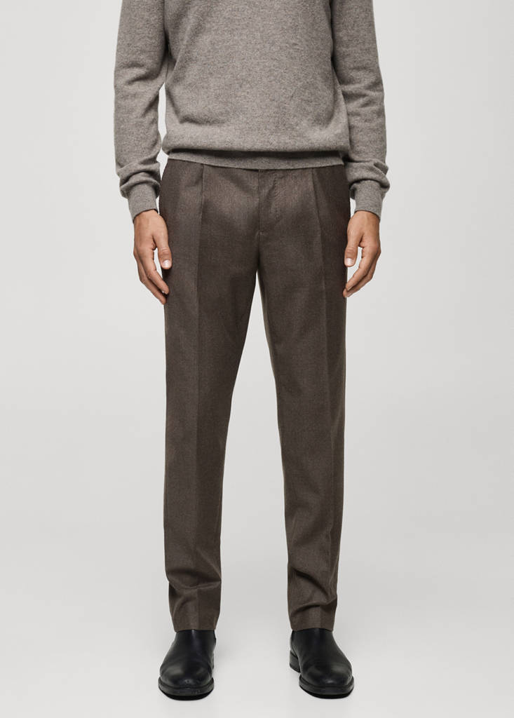 Colección Selection. Tejido 100% lana virgen italiana de la casa LANEROSSI BY MARZOTTO. Confeccionado en Portugal. Pinzas en la parte delantera. Detalle de raya planchada en la parte delantera y trasera. Cierre delantero de botón, gancho y cremallera. Botones en el interior de la cintura para tirantes. Trabillas para cinturón. Dos bolsillos de ribete laterales. Dos bolsillos de ribete y botón en la parte posterior