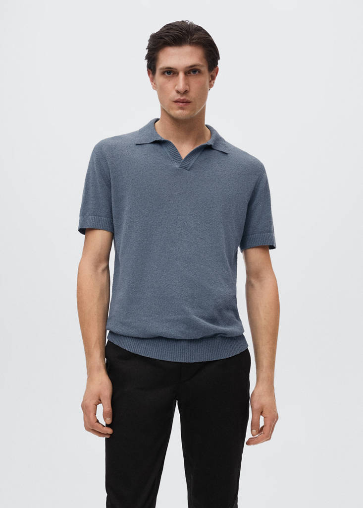 Tejido mezcla de algodón. Tejido con textura. Cuello polo. Manga corta. El modelo mide 187 cm y lleva una talla M