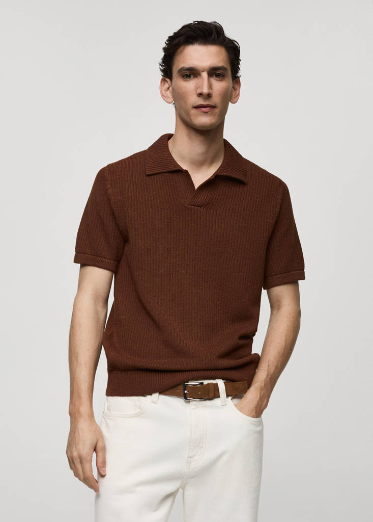 Tejido mezcla de algodón. Tejido de punto grueso. Cuello polo acabado en pico sin cierre. Manga corta. Bajo con goma elástica