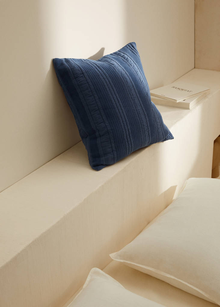 Funda de cojín rayas 50x50 Histórico de preciosPrecio inicial tachado [22,99 € ]22,99 €Precio actual [15,99 € ]15,99 €-30 %Selecciona un colorAzulSelecciona tu talla50x50cmNo disponible ¡Lo quiero!AvísameExclusivo Online. 100% Algodón. Diseño de rayas. Tamaño: 50x50cm. Con texturaDetalles, composición y cuidadosDisponibilidad en tienda